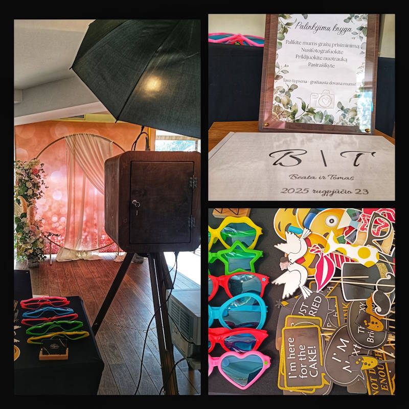 - Svečias išsirenka fotorekvizitus ir prieina prie fotobūdelės.